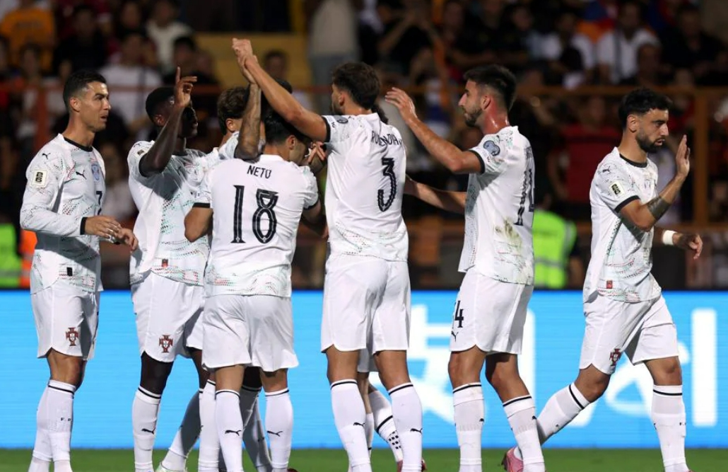 雷速体育9月7日讯 世欧预迎来一场焦点战,由C罗领衔的葡萄牙客场挑战亚美尼亚。该场对决上半场,葡萄牙3-0遥遥领先,来自于沙特联赛的球星抢尽风头,包办了全部三粒入球。